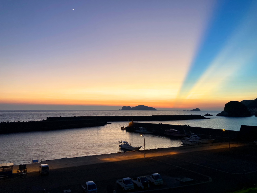 荷物を片付けたら、まずは宿でシャワーを浴びてサッパリ。ひと息ついたあとは、沖ノ島の景色を楽しみに展望台へお出かけ♪