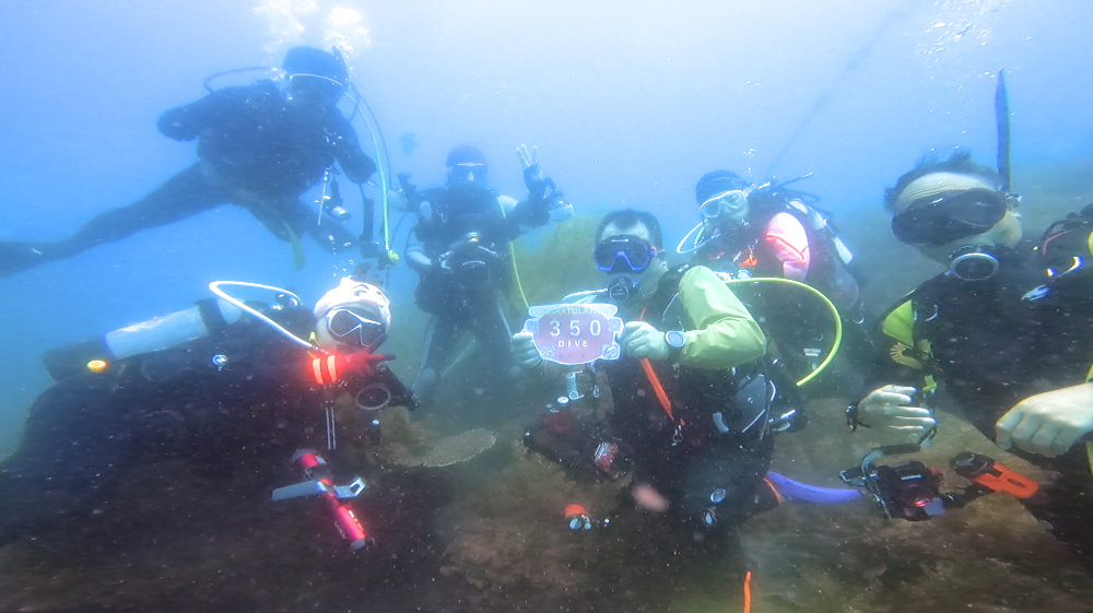 そしてこの1本目で350本記念ダイブを迎えた方も🎉✨ みんなで記念撮影をしてお祝いムード満点の1本となりました!