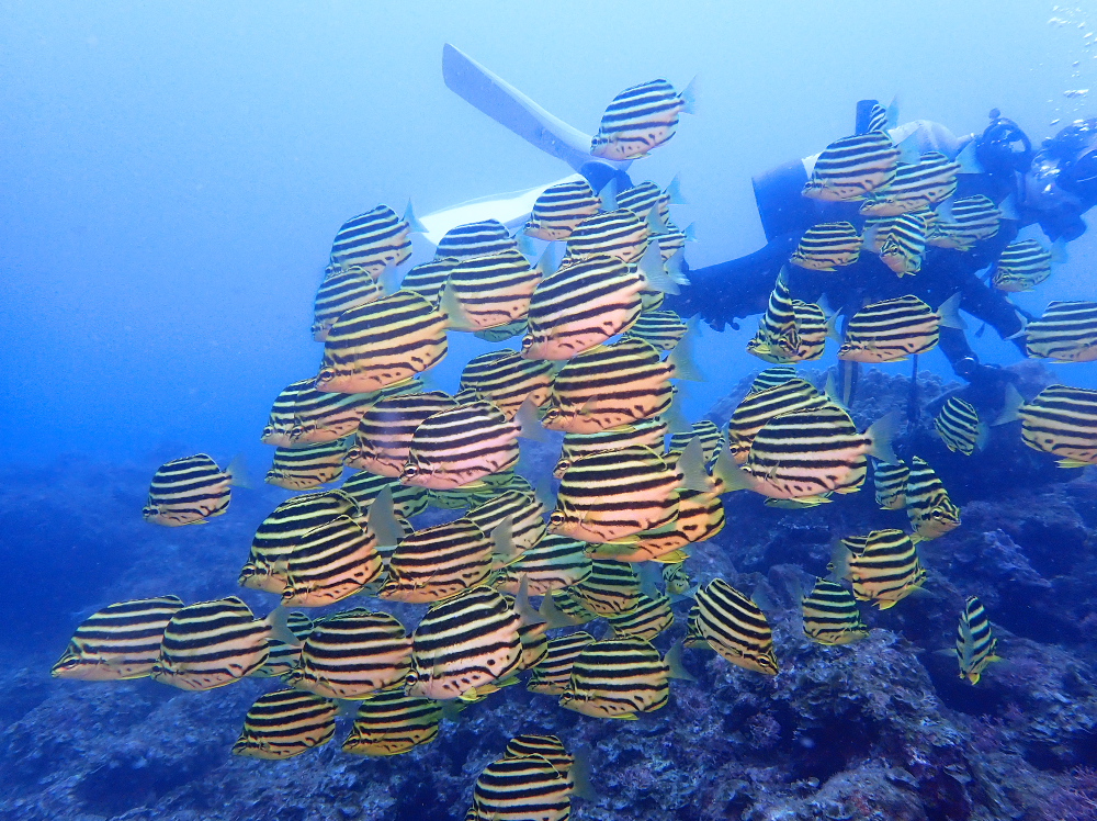 サンゴも驚くほど元気で、そこにキンギョハナダイの群れが色を添えていて、本当に美しい水中世界が広がっていました✨